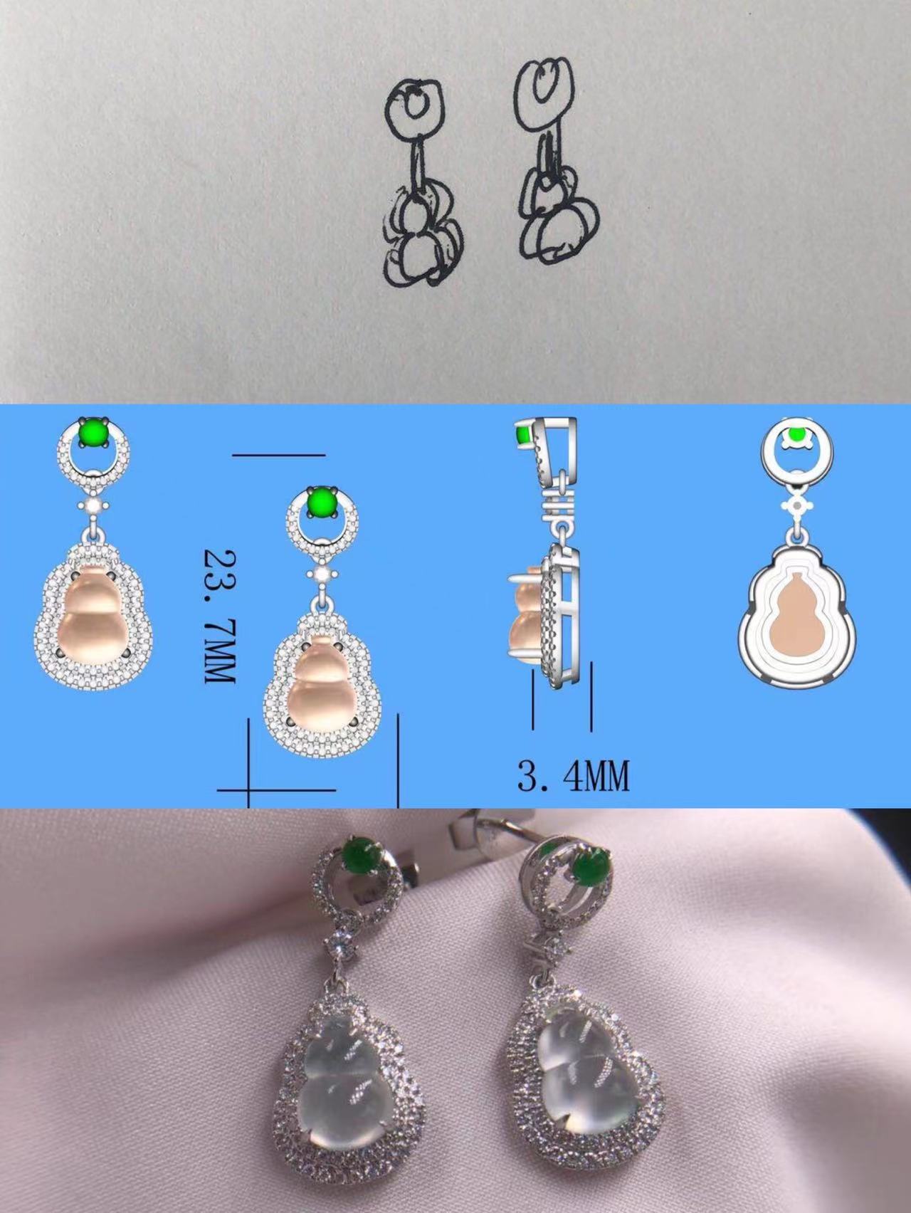 All new design rendering are ONLY RMB280. Shanghai Medora jewelry is a workshop serving expats who are working and living in China and those who want to design their own jewelry products even without designing skills. You can give us any rough drawing or handwriting scripts or jewelry pictures you like, Medora will make it true with lowest price, best quality, highest efficiency, best post-sales service with replacing1-5 points diamonds lost for free for 1 stone for one year. YOUR IDEA, we MAKE it TRUE.